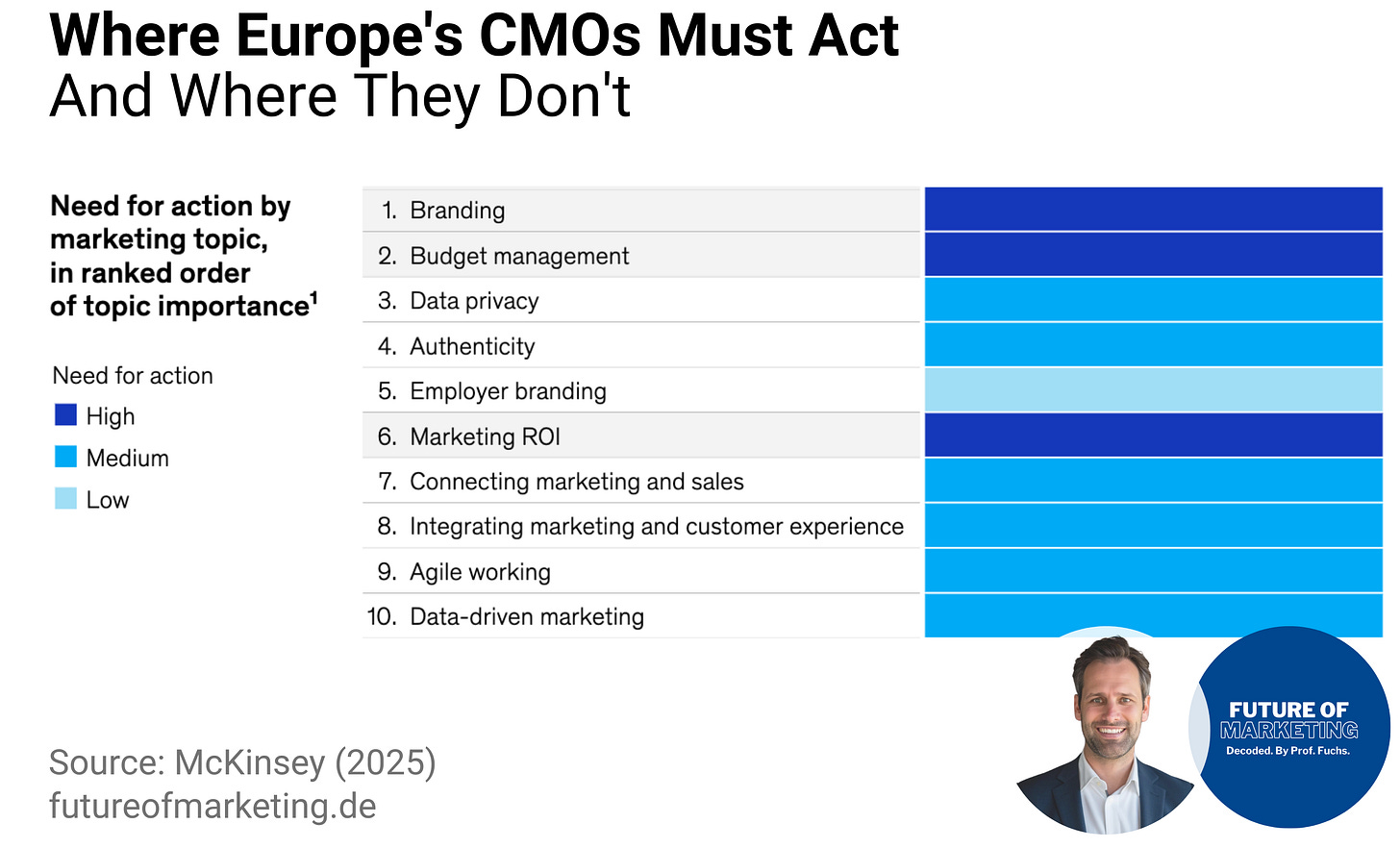 McKinsey’s report classifies data-driven marketing as a medium need-for-action topic — not the highest urgency, but far from resolved. The gap between perceived importance and actual maturity remains real.