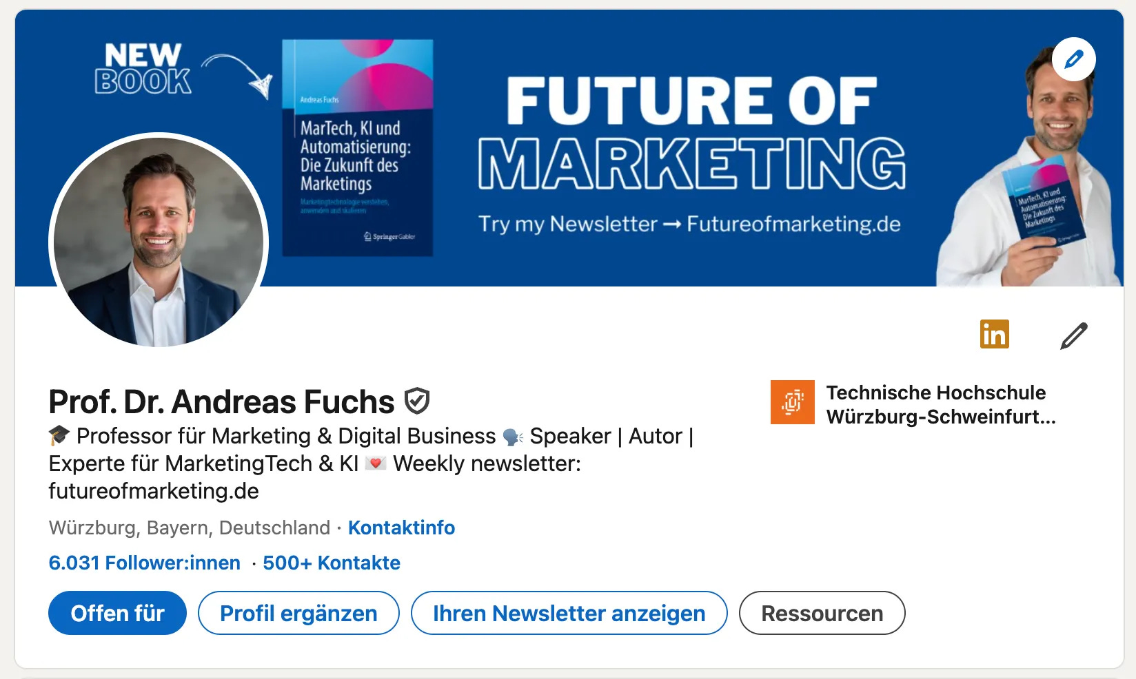 Headline: State who it is for and what transformation you offer. Not your title. Your promise. My headline, for example, does not just say “Professor of Marketing.” It says what I do and why it matters.